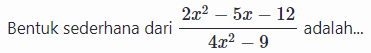 12. Hasil pengurangan 3x−4"> dari 2x+5"> adalah...